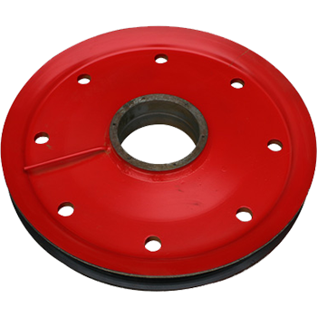 滑輪幅板采用幅板壓制成型,滑輪兩支點受力,與輪轂成三角形,加強滑輪的穩定性,此結構新穎,為我司獨有滑輪生產工藝,相同受力情況下,可減少滑輪重量,R槽為車刀成型,因此與輪轂軸的同軸度更高,R槽跳動小,性價比極高。