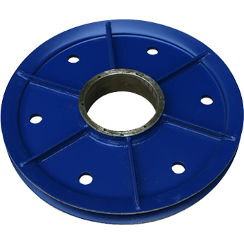 滑輪幅板采用幅板壓制成型,滑輪兩支點受力,與輪轂成三角形,加強滑輪的穩定性,此結構新穎,為我司獨有滑輪生產工藝,相同受力情況下,可減少滑輪重量,R槽為車刀成型,因此與輪轂軸的同軸度更高,R槽跳動小,性價比極高。